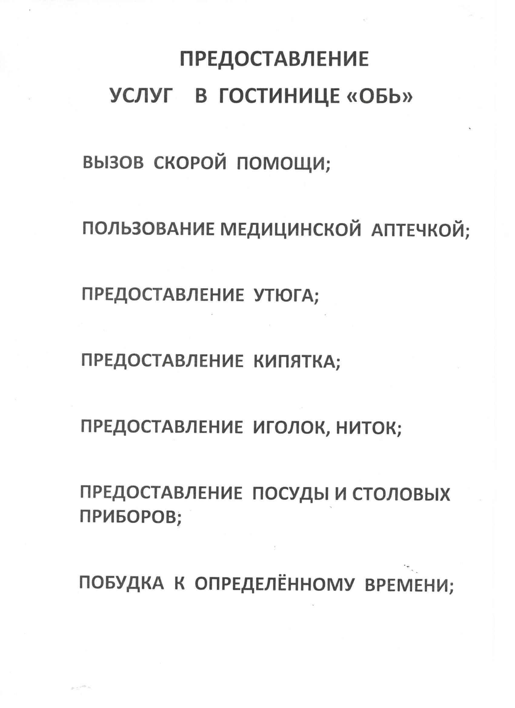 Предоставление услуг в гостинице ОБЬ |